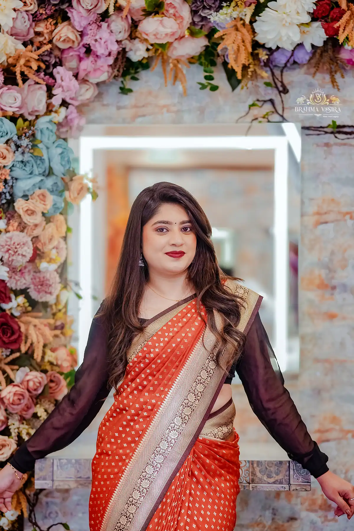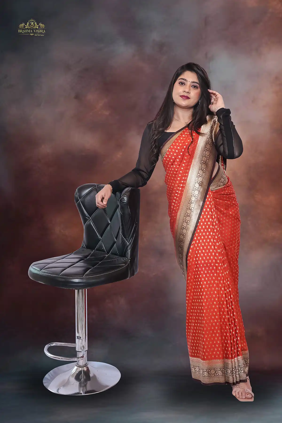 Banarasi silk mango pallu saree (orange and brown combination)