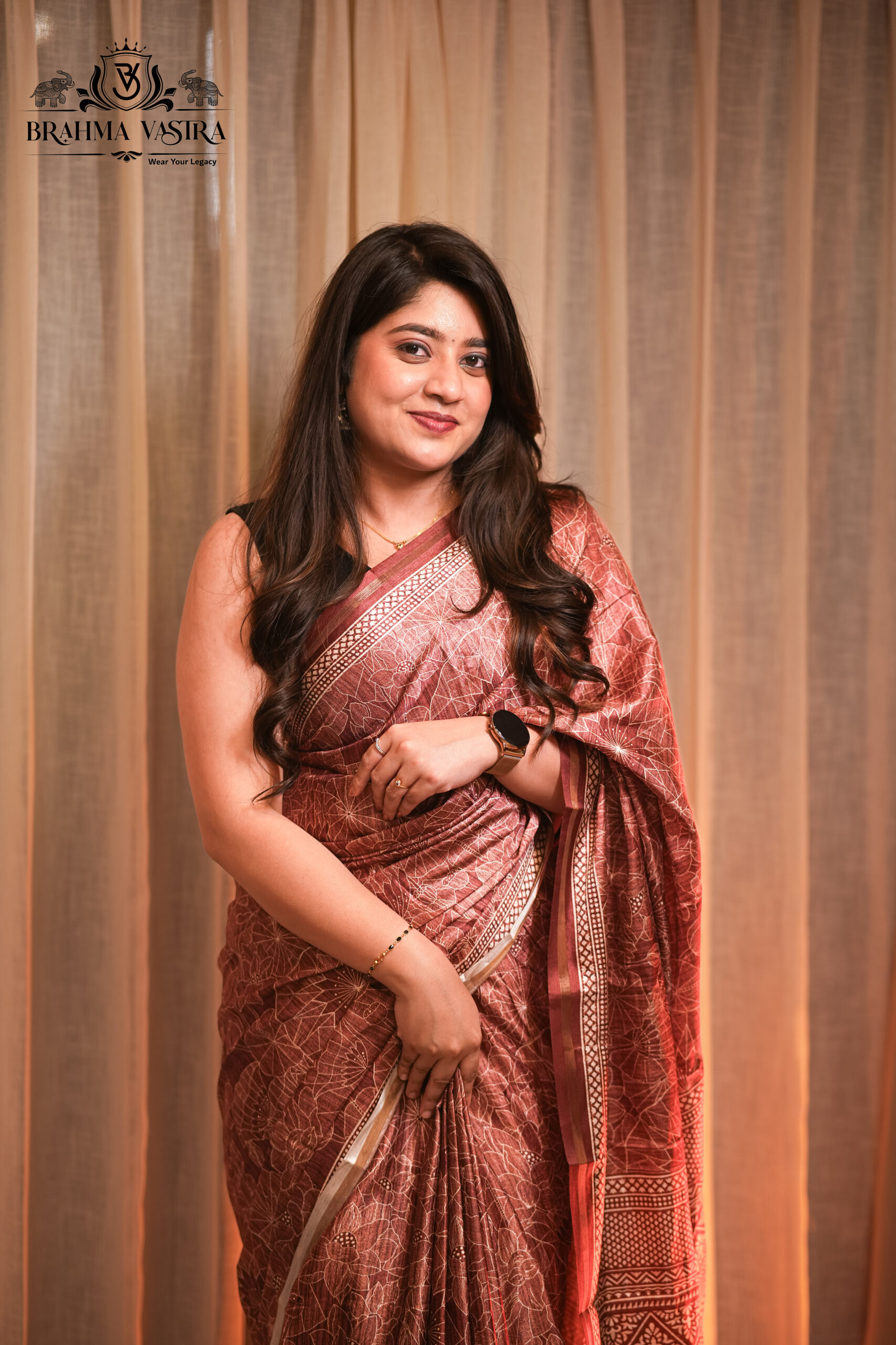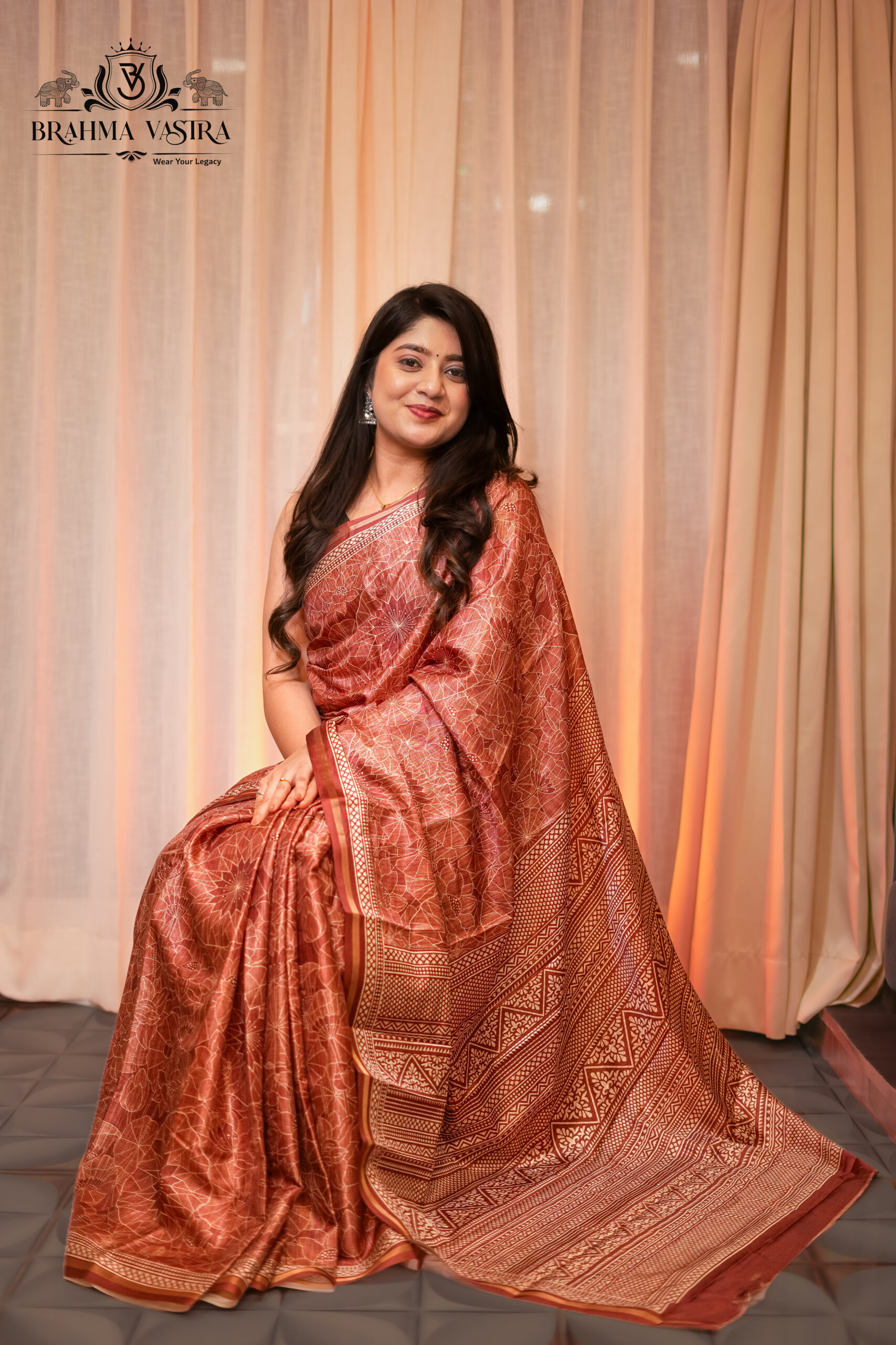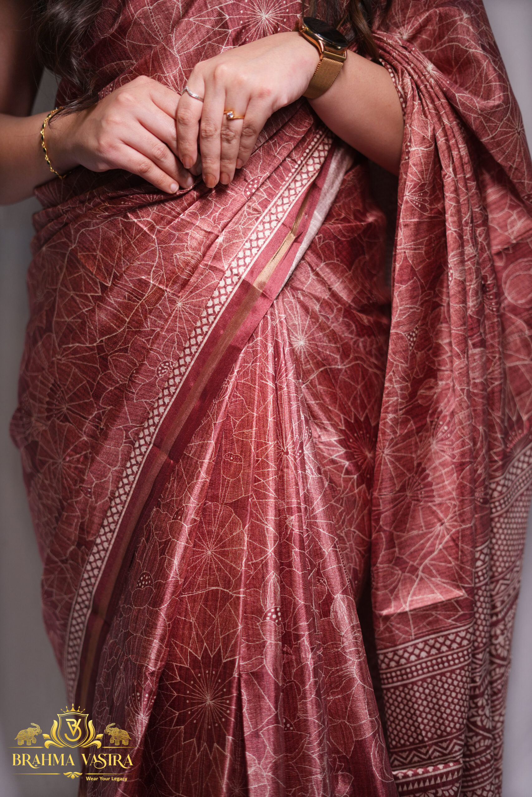 Tabby brown digital print silk saree