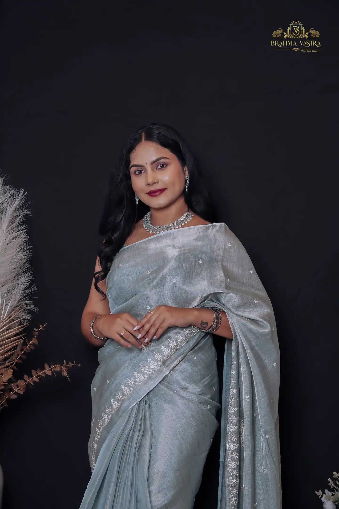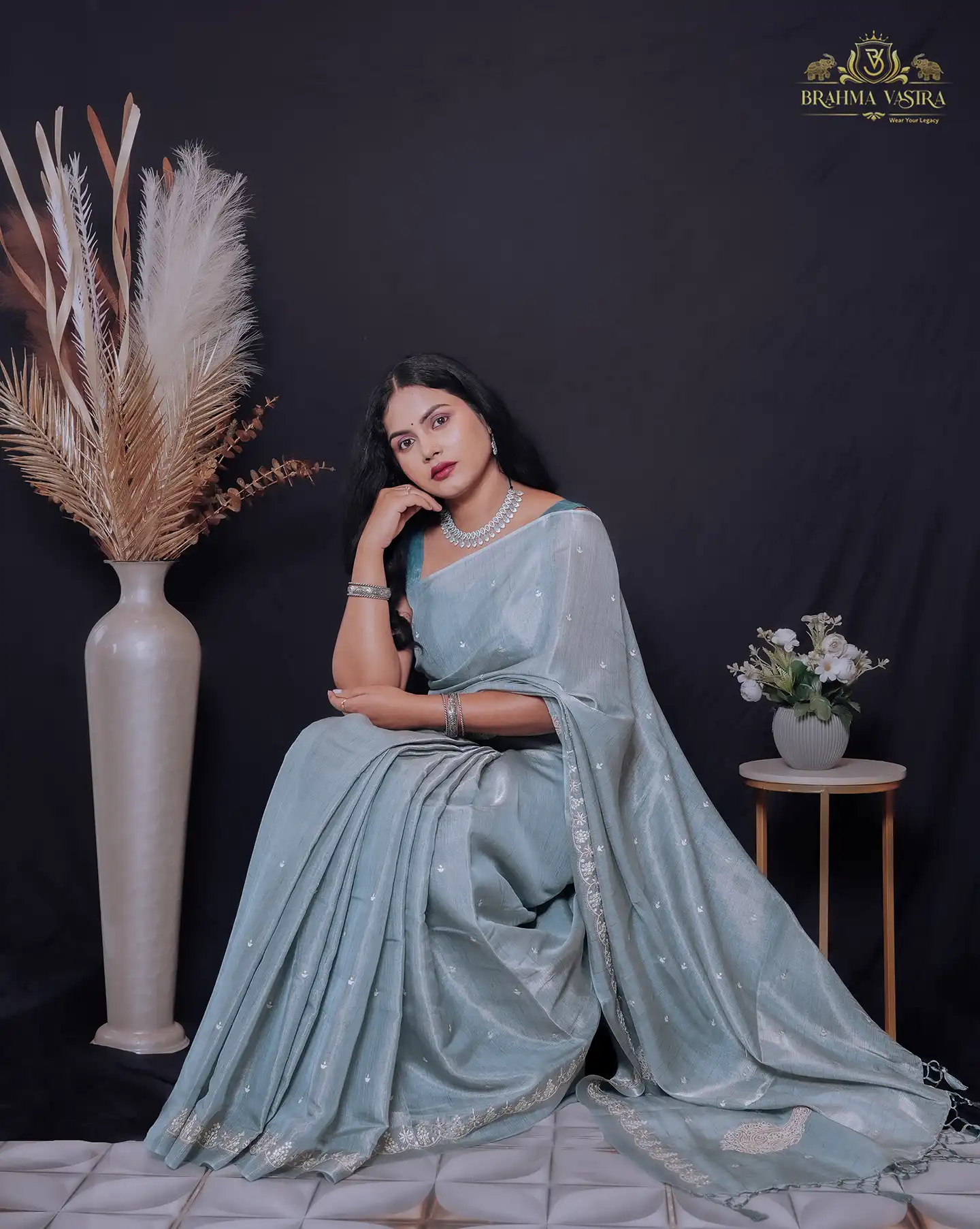 Tissue Matka Saree (Greyish Blue Green)
